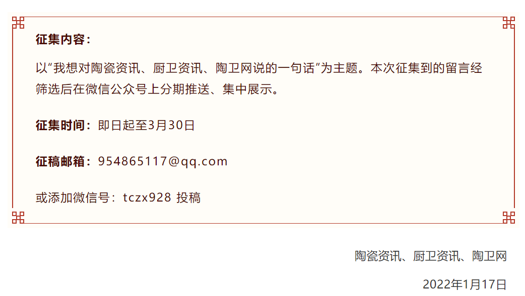 此前《15周年慶征稿啟事|我與陶瓷資訊、廚衛(wèi)資訊、陶衛(wèi)網(wǎng)的故事》在行業(yè)內(nèi)反響熱烈,收到不少朋友投稿。