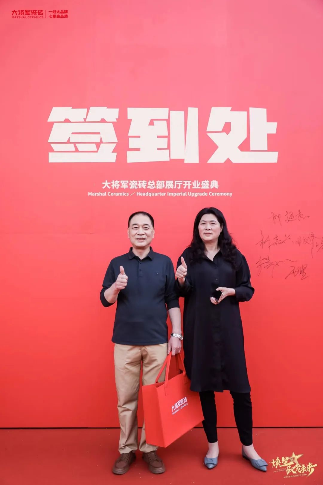 慶典當(dāng)天,鑼鼓喧天,醒獅獻(xiàn)瑞?;ɑ@簇?fù)?,歡聲笑語。現(xiàn)場布置紅紅火火,處處洋溢著歡樂喜慶的氛圍。領(lǐng)導(dǎo)、嘉賓和經(jīng)銷商客戶陸續(xù)進(jìn)場簽到,共同祝賀大將軍瓷磚展廳開業(yè)大吉、財(cái)源廣進(jìn)、宏圖大展!