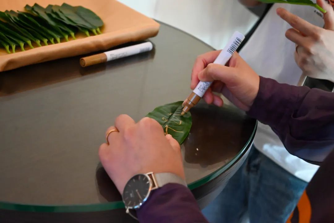 為了增加互動(dòng)性,簡(jiǎn)舍特別設(shè)計(jì)簽到環(huán)節(jié),讓每個(gè)人手上的葉子,去繁茂同一片“生命之林”,蘊(yùn)含“簡(jiǎn)舍之樹(shù)”枝繁葉茂的美好寓意。