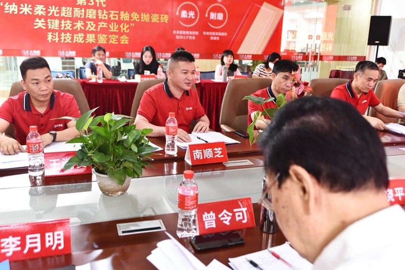 2023年4月17日,中國輕工業(yè)聯(lián)合會在廣東省佛山市組織并主持召開了由廣東大角鹿新材料有限公司 、佛山市陶瓷行業(yè)協(xié)會完成的“納米柔光超耐磨鉆石釉免拋瓷磚關(guān)鍵技術(shù)及產(chǎn)業(yè)化”項目技術(shù)鑒定會。會上,鑒定委員會專家一致認為:“納米柔光超耐磨鉆石釉免拋瓷磚關(guān)鍵技術(shù)及產(chǎn)業(yè)化”項目整體技術(shù)達到國際領先水平。