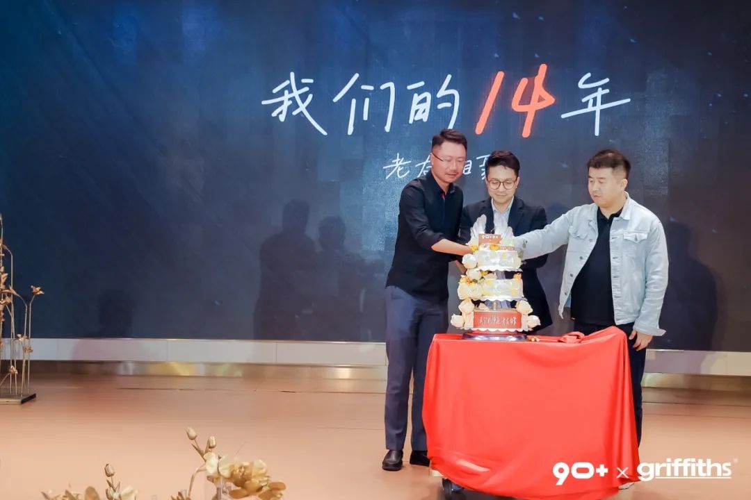 隨可愛小朋友悅耳的童聲合唱《生日歌》,90+瓷磚×格立菲斯進入14周年慶典環(huán)節(jié),品牌創(chuàng)始人周榮標先生、國內(nèi)營銷中心總監(jiān)余磊先生、品牌管理中心孔令鋒先生共切生日蛋糕,并邀請在場各位共悅生日,共同享用蛋糕,鑒證這一光輝時刻!最后,在悠揚的歌聲中,結束了本次振奮人心的14周年慶典。
