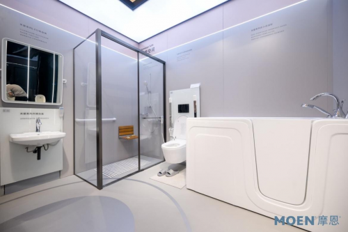 針對適老領域,摩恩圍繞居家安全、生活照料、康復護理等核心需求提供一體化整體方案。其中,步入式浴缸、多彩扶手、升降座廁等一系列產品為老齡群體提供高質量適老服務,提高老年人居家生活的安全性、便利性和舒適性。