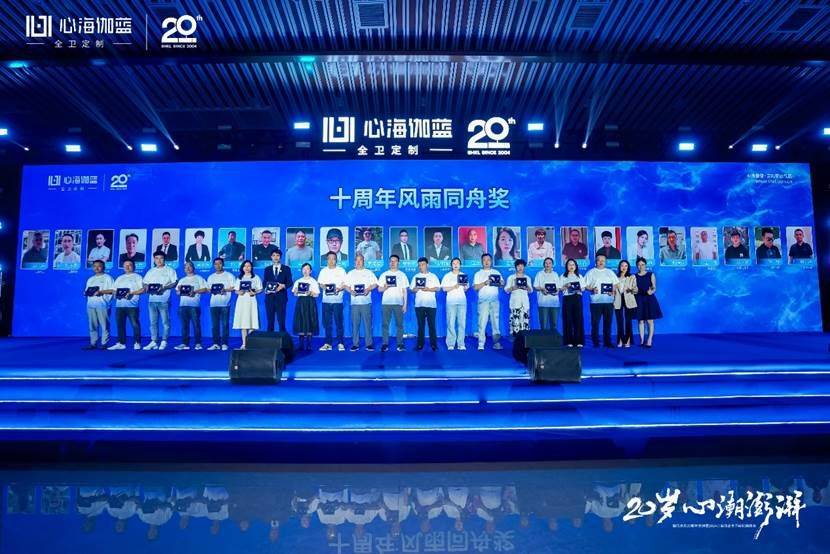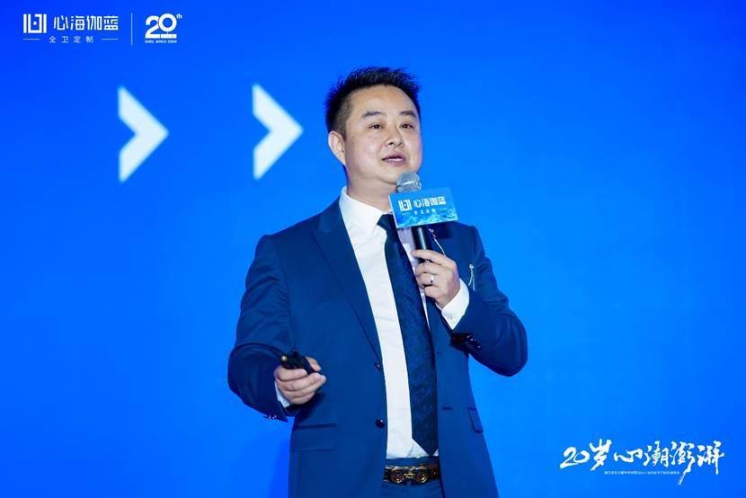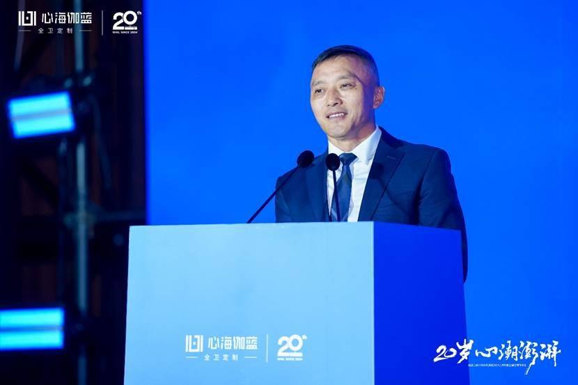 晚宴開始,張愛民董事長在閃耀燈光中登場,熱情洋溢地發(fā)表了20周年報告。張董真情流露地回顧了公司20年的發(fā)展歷程,從幾個人的從浴室柜單一品類的獨角獸到全衛(wèi)定制戰(zhàn)略領(lǐng)航,從多品牌運作到贏伽電商、凱庭淋浴房,雅頌衛(wèi)浴等七大分公司/中心集團發(fā)展,從專賣區(qū)到全國百城千家門店、至商業(yè)版圖覆蓋海外,心海伽藍始終敢為創(chuàng)新、銳意進取,從率先扛起數(shù)智化生產(chǎn)大旗開始,心海伽藍始終堅持開放分享的態(tài)度,與行業(yè)共同成長。