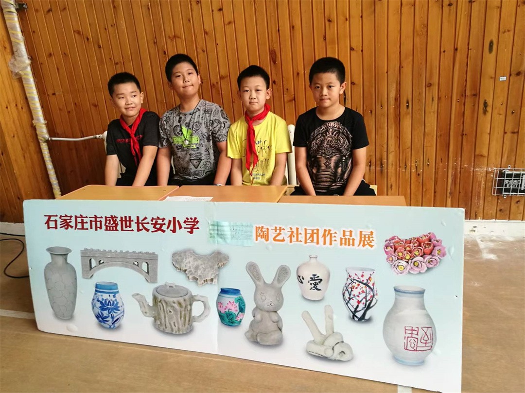 在各級領(lǐng)導(dǎo)的支持關(guān)心下,我校2015年獲河北省“陶藝教學(xué)示范基地”,學(xué)校成功承辦“千名小學(xué)生現(xiàn)場陶藝競賽”活動,有16位中國陶藝大師及教育局、省陶協(xié)、省工藝美術(shù)協(xié)會、省工藝美術(shù)學(xué)會領(lǐng)導(dǎo)岀席了活動。學(xué)生創(chuàng)作的陶藝作品,在全國、省市級比賽中獲獎與發(fā)表,學(xué)校陶藝社團(tuán)開展陶藝研學(xué)實踐、親子陶藝制作、專家講座、國際交流、送教下鄉(xiāng)等活動,陶藝社團(tuán)還組建陶瓷樂隊,傳承中華傳統(tǒng)文化。