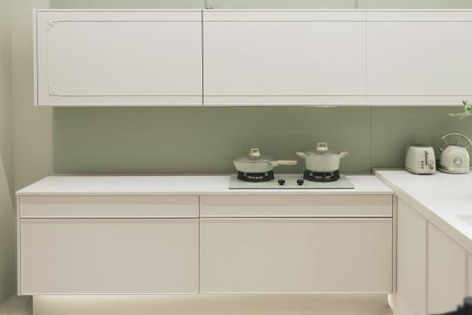 極簡奶油風(fēng)廚房,空間大面積的奶油色為基調(diào),色彩的微妙,石英肌理的溫潤,活躍了空間的氛圍,明亮而柔軟的詩意設(shè)計,為繁瑣的日常帶來了舒緩的平衡感。法薩石以石英與國色的創(chuàng)意融合,帶來了優(yōu)雅治愈的視覺審美。