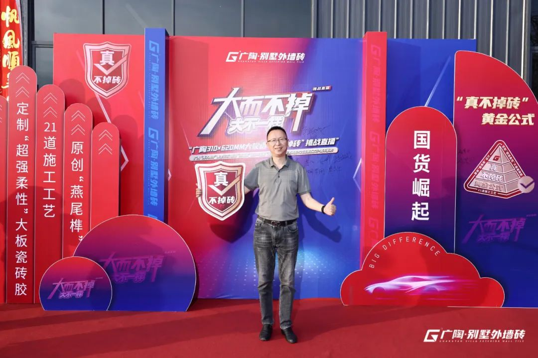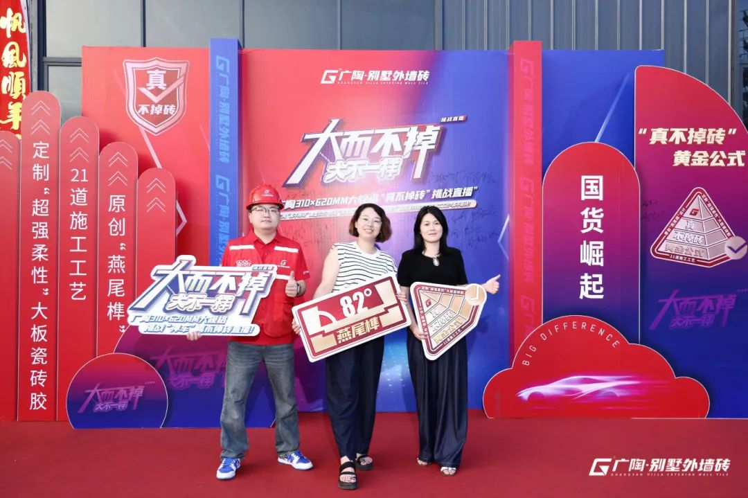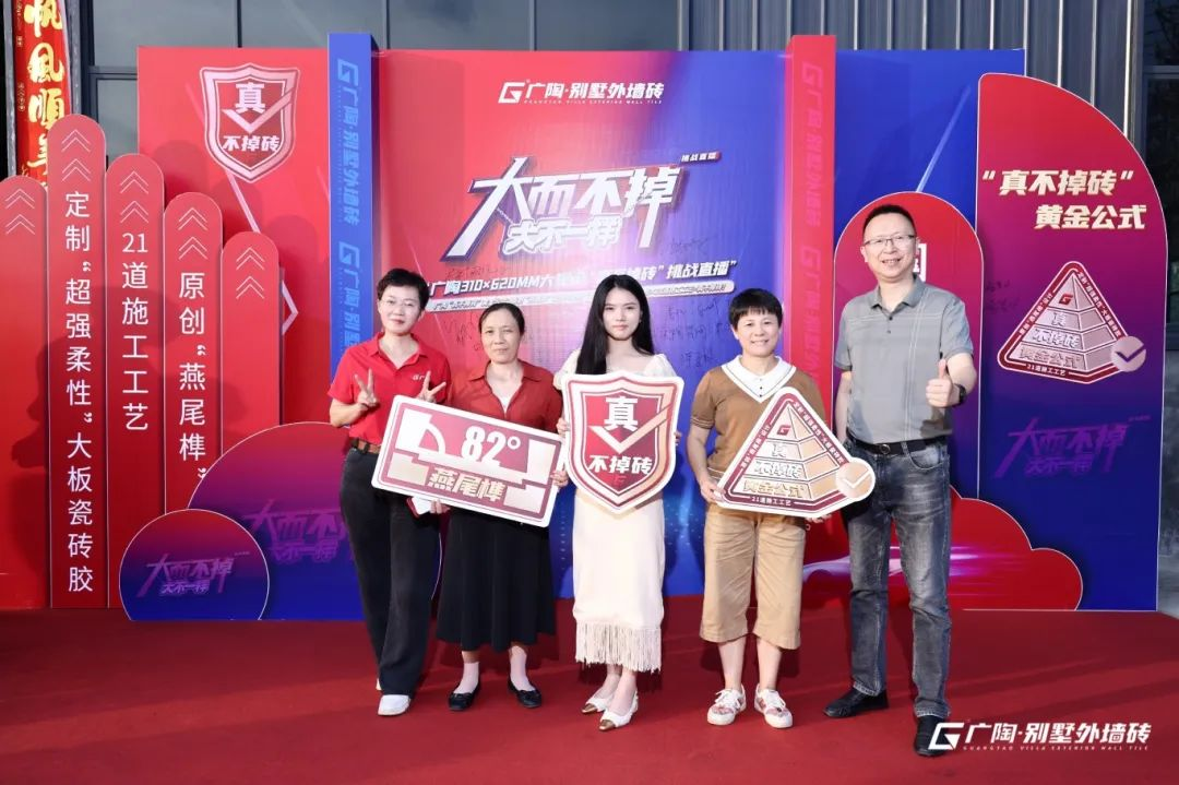 在追求外墻建筑美觀與安全并重的今天,大規(guī)格外墻磚的易脫落問(wèn)題一直是行業(yè)內(nèi)的痛點(diǎn)!為正面應(yīng)對(duì)并解決這一行業(yè)難題,廣陶別墅外墻磚于2024年7月4日晚,在抖音、視頻號(hào)、小紅書(shū)及天貓四大直播平臺(tái),成功舉辦了備受矚目的大而不掉 ·大不一樣——廣陶“310×620MM”大規(guī)格挑戰(zhàn)“神車”真不掉磚直播活動(dòng)。此次全網(wǎng)直播的產(chǎn)品測(cè)試活動(dòng)不僅彰顯了廣陶作為外墻磚領(lǐng)域領(lǐng)導(dǎo)者的擔(dān)當(dāng)與魄力,更是通過(guò)現(xiàn)場(chǎng)實(shí)驗(yàn)與權(quán)威解析,向業(yè)界及廣大消費(fèi)者證明了推出的這套科學(xué)、嚴(yán)謹(jǐn)且系統(tǒng)的外墻磚防脫落解決方案的可行性——“真不掉磚·黃金公式”:原創(chuàng)“燕尾榫”設(shè)計(jì)×定制“超強(qiáng)柔性”大板瓷磚膠×21道施工工藝=真不掉磚!這同樣標(biāo)志著外墻磚行業(yè)在技術(shù)創(chuàng)新與安全保障方面邁出了重要一步,也為廣大業(yè)主提供了更加安全可靠、省心省時(shí)更省錢(qián)的選擇。