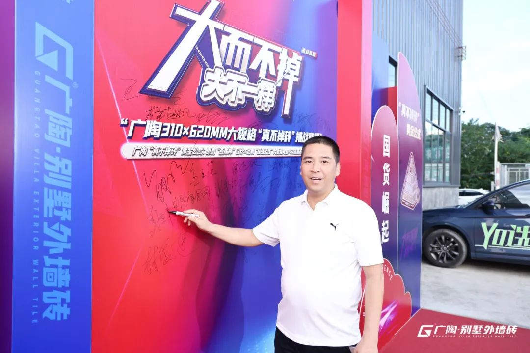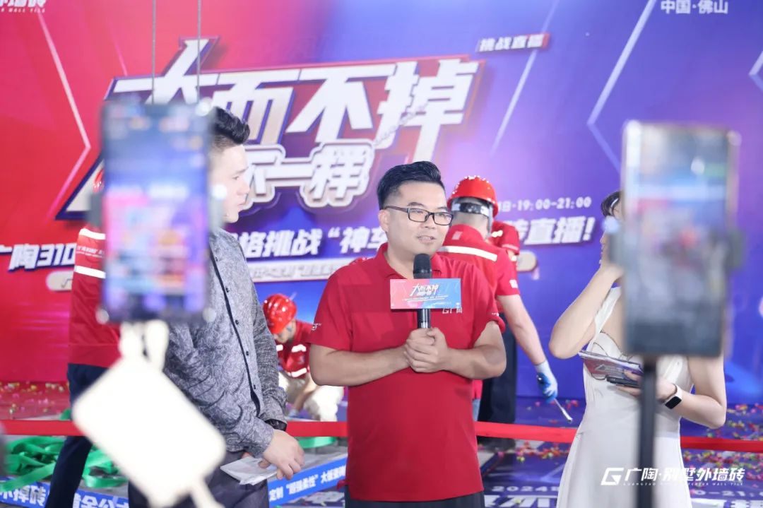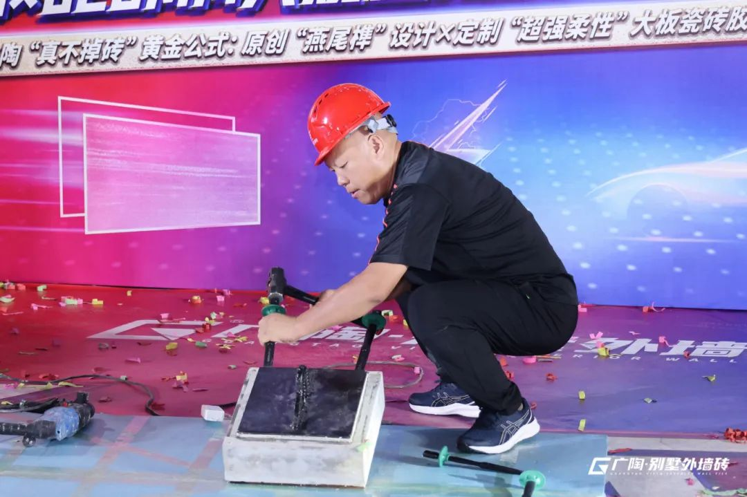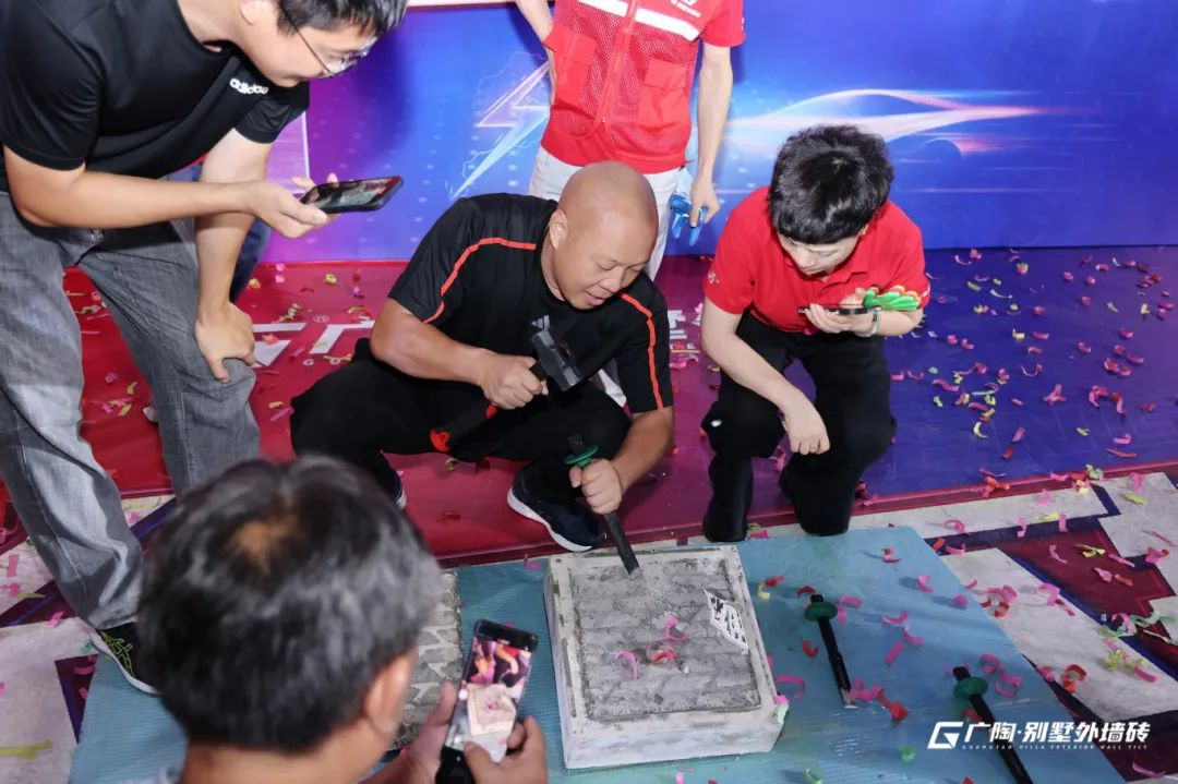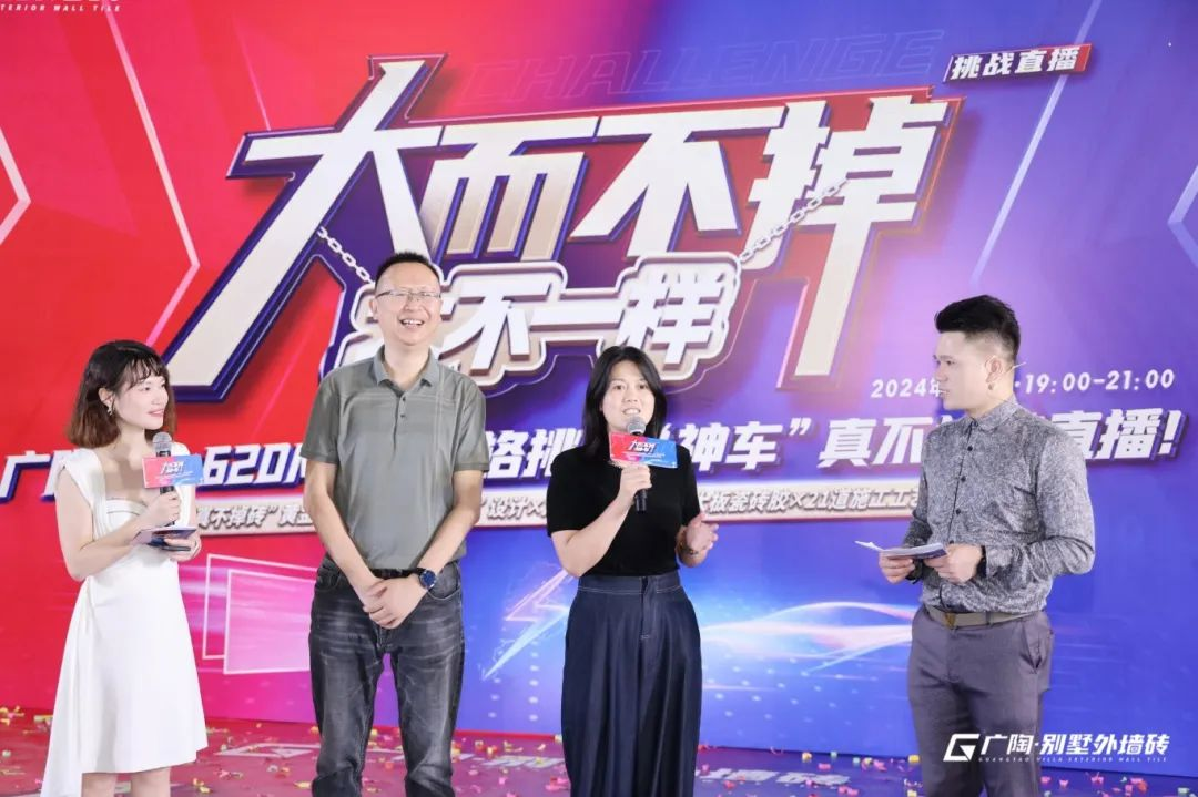 本次活動(dòng)廣陶邀請(qǐng)了知名達(dá)人KOL主播西西,攜手廣東廣陶新材料科技有限公司總經(jīng)理鐘志城先生、廣陶服務(wù)商代表、業(yè)主代表及媒體朋友,共同拉開(kāi)本場(chǎng)“真不掉磚”挑戰(zhàn)的序幕。