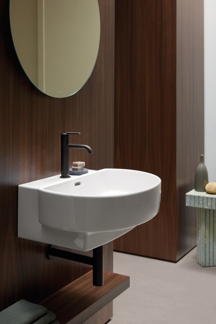 該系列的設(shè)計核心與靈魂色調(diào)——啞光陶土色,以傳統(tǒng)工藝為靈感,賦予陶瓷產(chǎn)品質(zhì)樸自然而溫暖優(yōu)雅的質(zhì)感,使其更具有手工般的真實觸感。Urquiola表示:“我們的目標(biāo)是利用陶土這種材料,創(chuàng)造出一種讓衛(wèi)浴用品更有層次的畫布。這是有意偏離純白或純黑極簡美學(xué)的嘗試。”這也構(gòu)成了浴室家具的配色基礎(chǔ),大地色系的陶土色調(diào)以及以自然為靈感的色彩搭配,其中融入了白色、土棕色和啞光炭黑色的微妙變化,預(yù)示著浴室色彩運用的全新開放性。