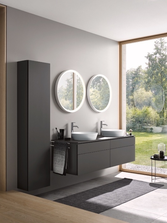 Christian Werner設(shè)計(jì)的杜拉維特Vitrium系列巧妙融合纖薄柜體與懸挑的臺(tái)上盆,打造獨(dú)立有序的洗漱空間,同時(shí)采用背光半透明玻璃作為浴室柜前面板,營(yíng)造出輕盈通透的視覺(jué)效果,柔和的光影效果為浴室增添一抹靈動(dòng)與浪漫。無(wú)論是清晨的第一縷陽(yáng)光,還是夜晚的溫馨燈光,這一設(shè)計(jì)讓空間煥發(fā)出獨(dú)特的光彩,為日常生活注入溫暖與愛(ài)意。